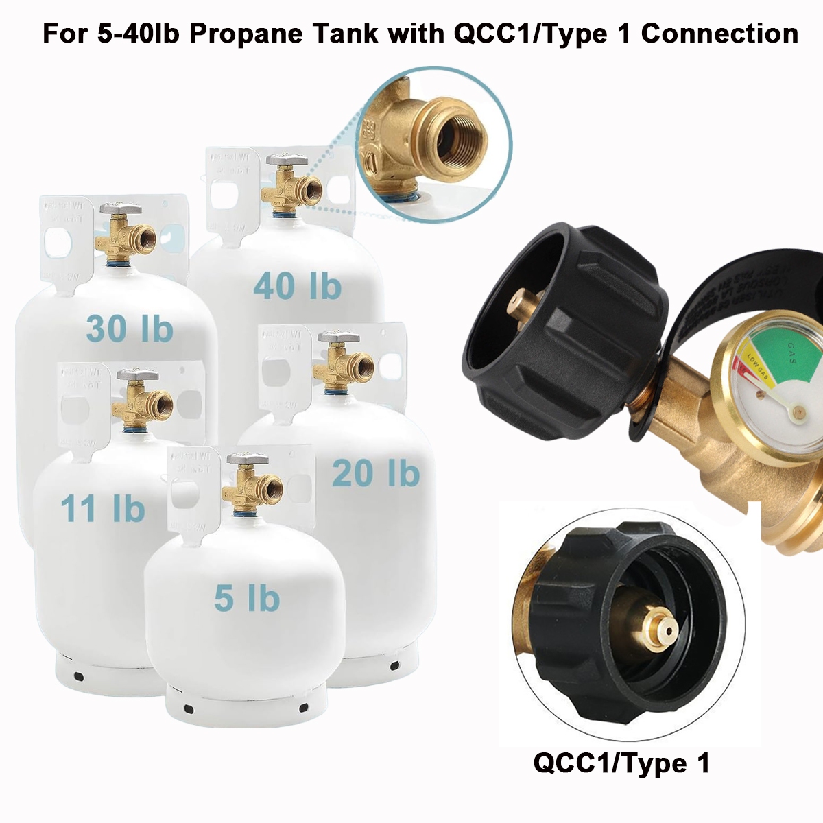 - ⏲️【Easy to use】▶ Compatible with universal 5lb to 100lb propane tanks with a QCC1 / type1 connection. With a handwheel or other tools are not needed during installing.